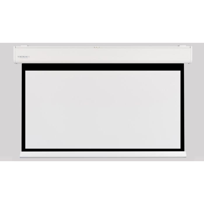 Lo schermo per proiezione elettrico nel formato 16:9 è un prodotto realizzato di alta qualità, dotato di bordi laterali di colore nero da 5 cm, e di un extra top superiore di 50 cm. Realizzato da Screenline fa parte della serie Slim. La luce netta di proiezione di questo prodotto è di 190x106 cm, per una misura in pollici di diagonale pari a 86
