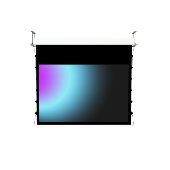 Nuovo schermo Screenline Inceiling Tensioned EVO, cassonetto a scomparsa (nel controsoffitto) con base da 150 a 430 cm. Cassonetto in alluminio.
