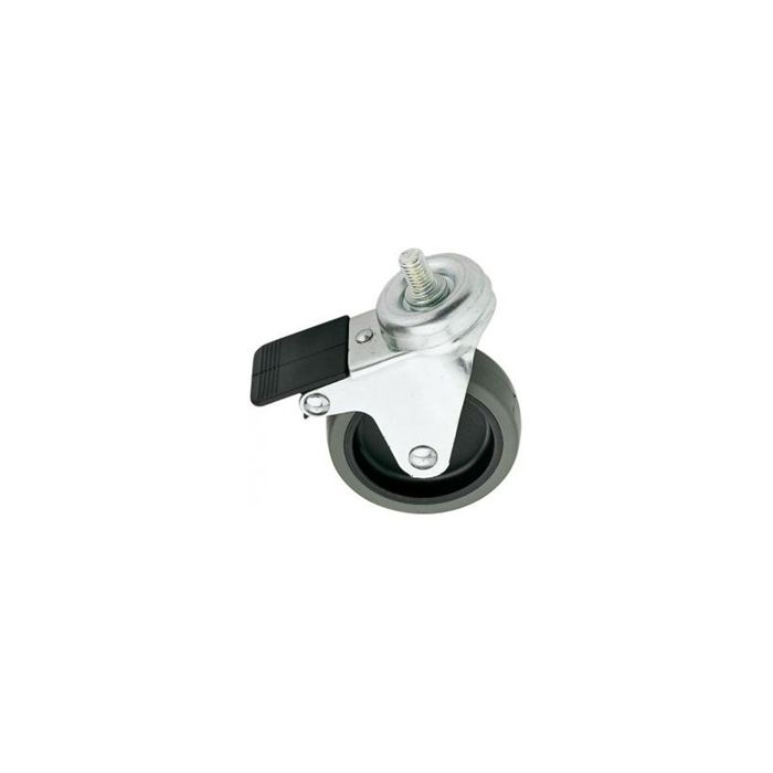 Ruota opzionale per prodotti made in Italy Euromet, realizzata in acciaio e copertura in gomma, con freno per bloccaggio di sicurezza e con diametro da 7,5 centimetri. Facile da montare.