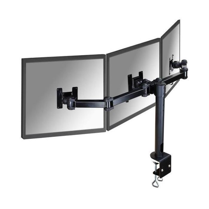 Questo braccio porta monitor NewStar, modello FPMA-D960D3 consente di collegare tre schermi LCD / LED / TFT su di una scrivania con la modalità di fissaggio su piano attraverso un morsetto.