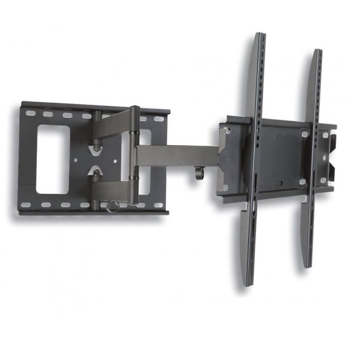 Supporta standard VESA fino 400 x 400 mm Massimo peso supportato: 50 kg Massima estensione 50cm Specifiche Rotazione orizzontale: +/- 90º Inclinazione: da -2° a +12° Include sistema di aggiustamento di livello orizzonatale Integra sistema di gestione del cavi Distanza dal muro 63 mm Include bolla di livello Colore: nero La confezione include Supporto a muro per TV LED LCD Accessori di fissaggio (viti, tasselli...) e istruzioni per l'installazione