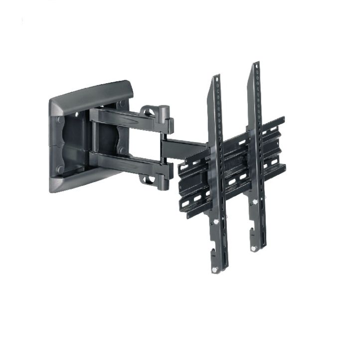Easythree 400 Il supporto TV a muro Easythree 400 è un supporto a muro con triplo snodo progettato per essere montato sia a parete che in angolo. Questo supporto permette un ampio raggio di spostamento e una regolazione dell’inclinazione, per queste caratteristiche risulta molto versatile e maneggevole e permette di trovare la giusta posizione al proprio dispositivo.