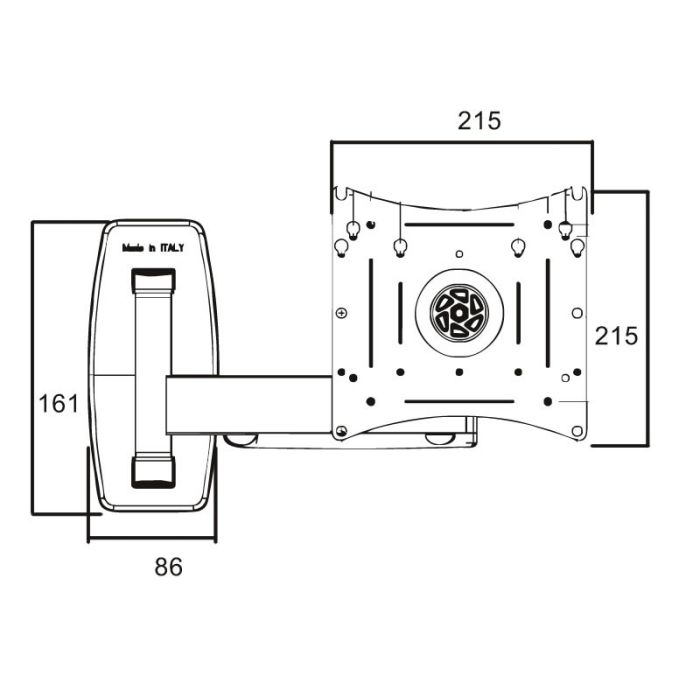 Gyro2 Extra vesa 200×200 Supporto per TV e monitor della portata di 25 Kg Staffa dotata di 2 snodi con braccio da 20 cm che permette di regolare la distanza dello schermo da un minimo di 5 cm a un massimo di 28 cm per installazioni si ultraslim che per quelle che richiedono più spazio per l’installazione di un mini pc o del decoder.