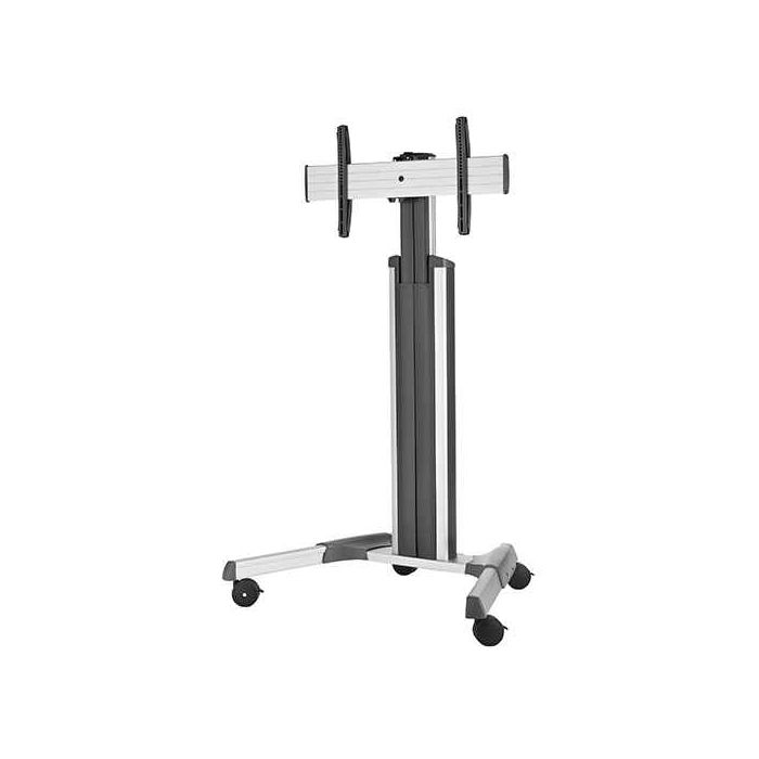 Un supporto da pavimento estremamente versatile: 4 rotelle per facilitare gli spostamenti, colonna centrale che funge anche da passacavi, altezza regolabile tramite comoda e pratica manopola da un minimo di 127 centimetri ad un massimo di 178 centimetri, piastra VESA universale, inclinazione dello schermo su asse verticale fino ad un massimo di 5 gradi.