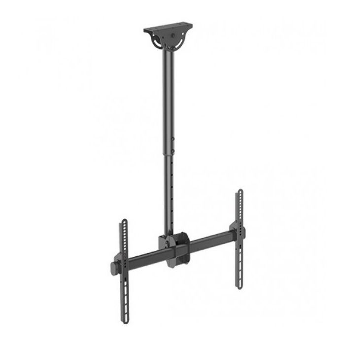Allungabile fino a 91 centimetri (dal soffitto al centro del televisore), carico massimo pari a 50 chilogrammi, piastra inclinabile per applicazioni a soffitto piano e a spiovente. Colore nero.